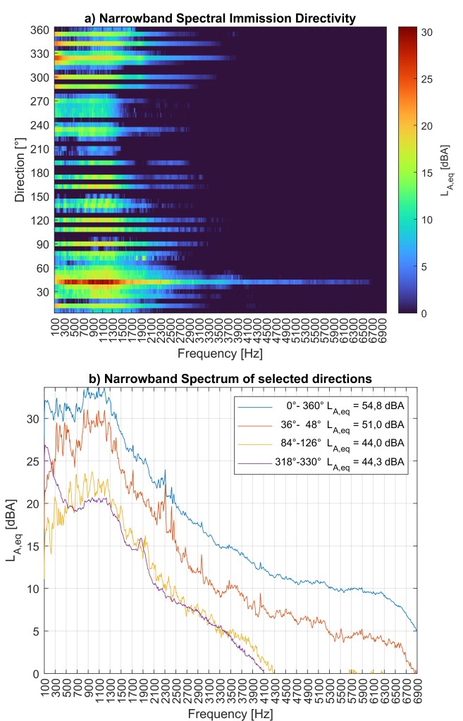 For the first time, narrowband spectral immission directivity (SID) has been tested outside the lab and in real-world conditions. Over the course of three separate 24-hour measurement campaigns at different locations, we captured and analyzed environmental noise using this new approach.